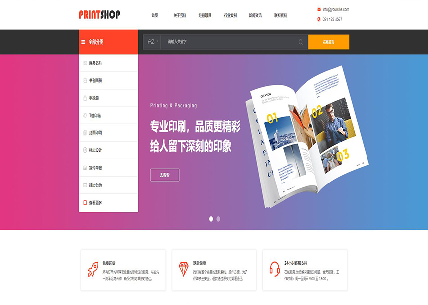 模板名稱:(帶手機版數(shù)據(jù)同步)自適應(yīng)印刷包裝類紅色企業(yè)通用網(wǎng)站模板